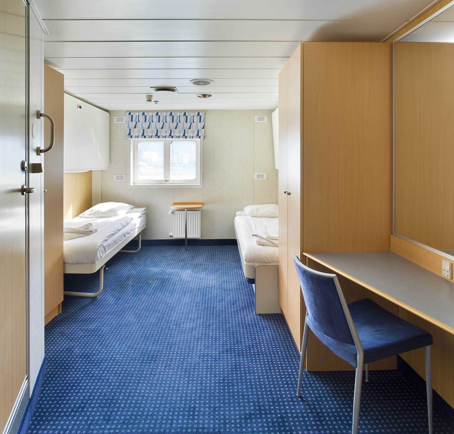 Bis zu 96 Passagiere kann das von erfahrenen dänischen Offizieren geführte Schiff in seinem Kabinen beherbergen. Diese sind allesamt Außenkabinen mit privater Dusche/WC und unten nebeneinander stehende Betten. Neben einem geräumigen Bordrestaurant können die Passagiere die gemütliche Bibliothek nutzen.