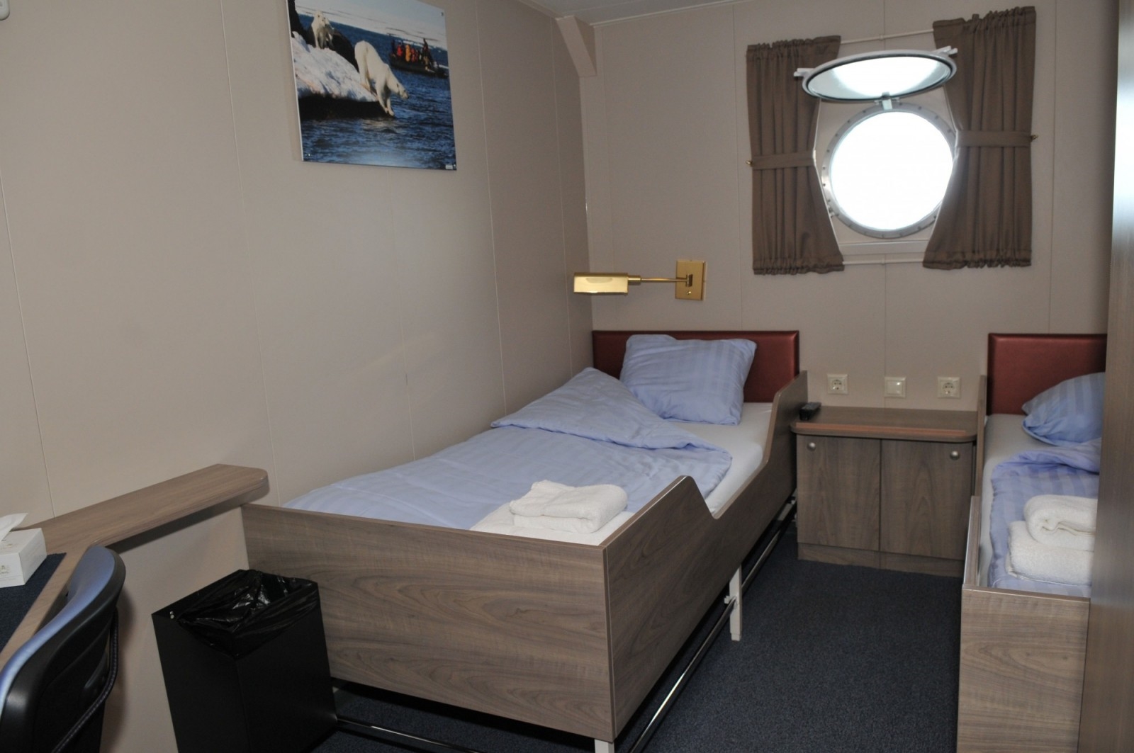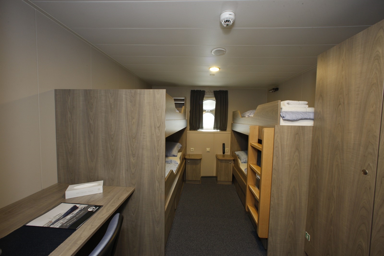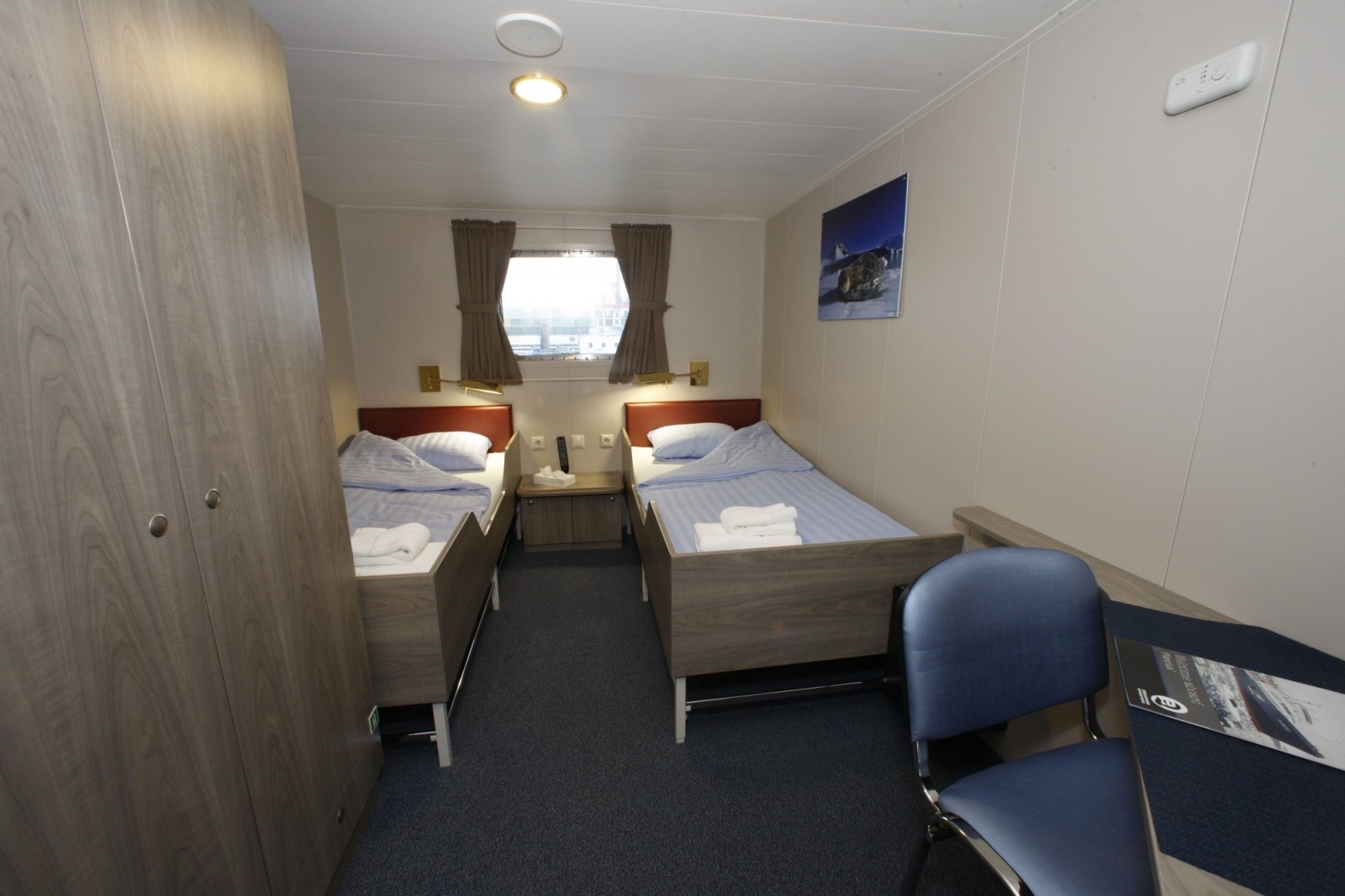 Es gibt 53 Passagierkabinen ( alle mit Dusche und WC). In allen Kabinen stehen Betten nebeneinander (Ausnahme Dreier und Viererkabinen, hier gibt es 2 Stockbetten). Das Schiff ist für Entdecker und diverse Aktivitäten ausgerüstet: Kajaks, Schneeschuhe, Zelte und Schlafsäcke für Field Camping, Wandergummistiefel für Wanderungen an Land,Expeditionsjacken kann man käuflich erwerben.