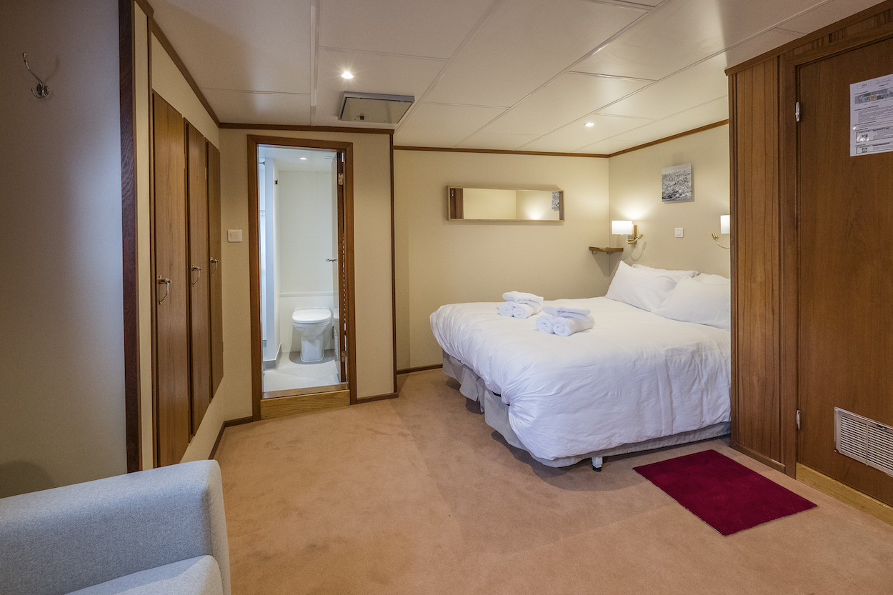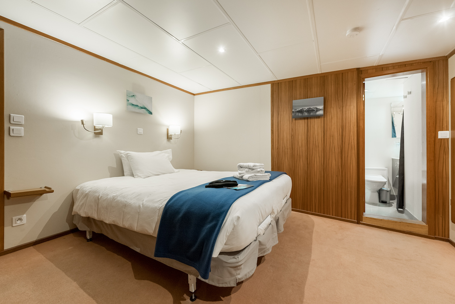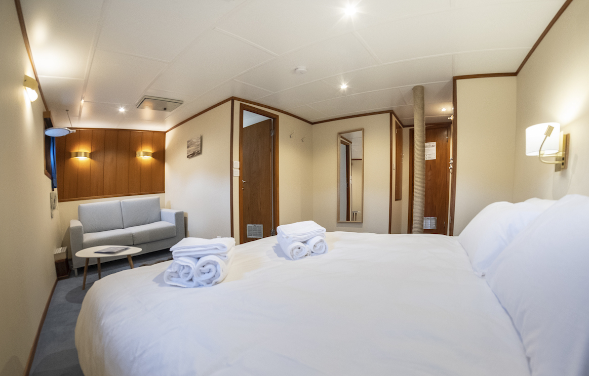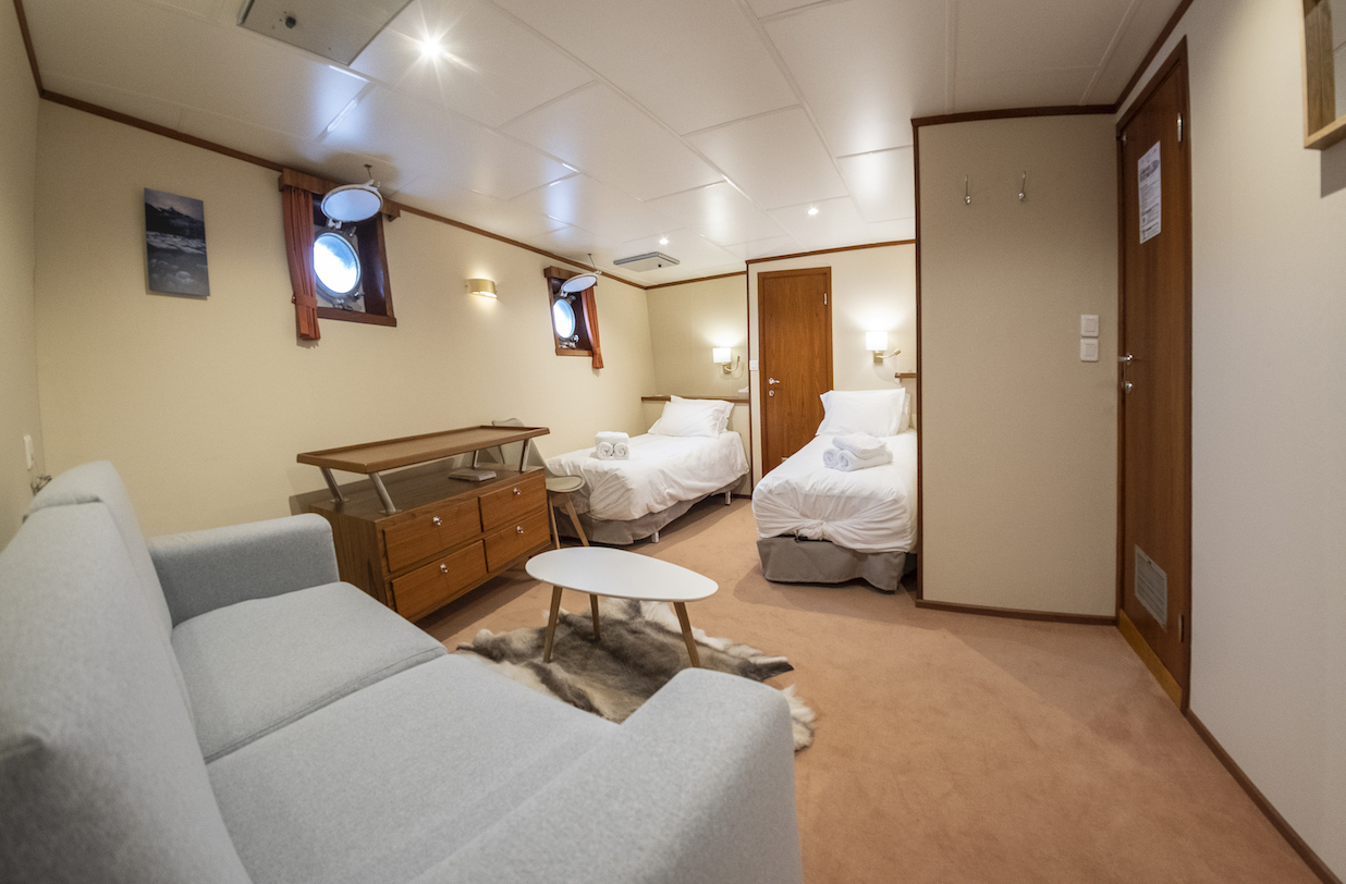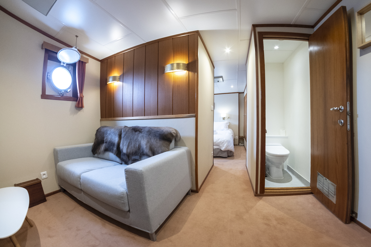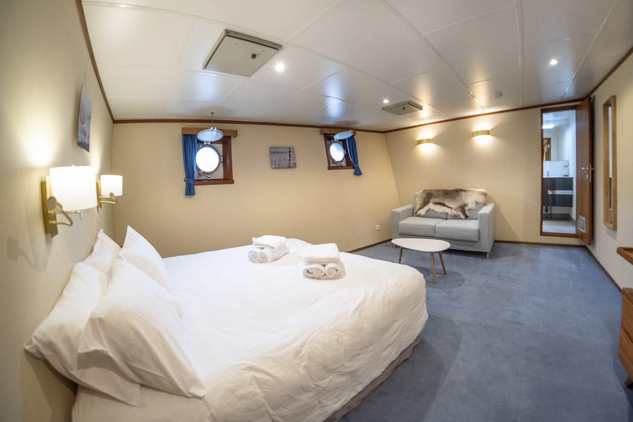 An Bord fehlt es an nichts: Genießen Sie Whirlpool, Panoramasauna, Fitnessraum oder Bibliothek und Souvenirladen. Auf der Brücke heißen Sie die Offiziere der Handelsmarine willkommen. Die Crew entführt Sie auf nautische Expeditionen und Sie können ganz in das Abenteuer Arktis eintauchen.