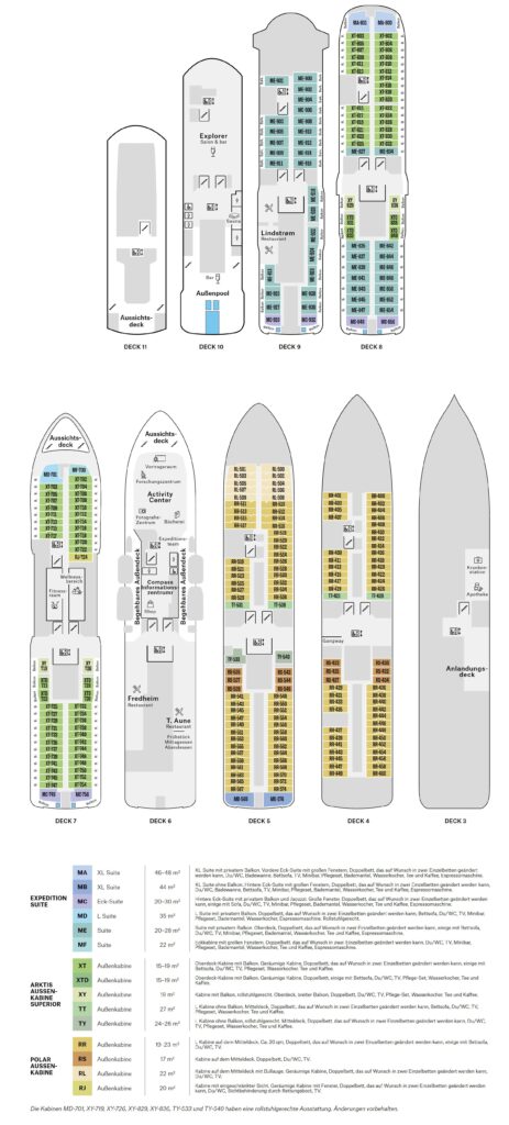 Zodiacs für Anlandungen ja halbe Doppelkabinen buchbar n/a Bordsprache deutsch, englisch