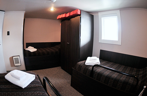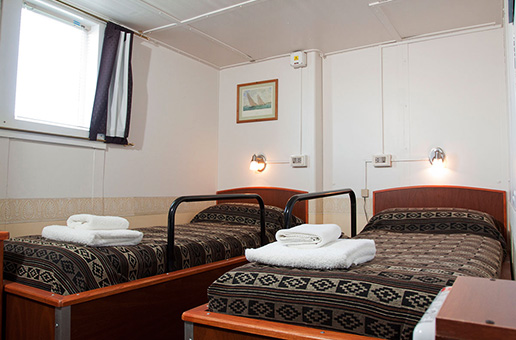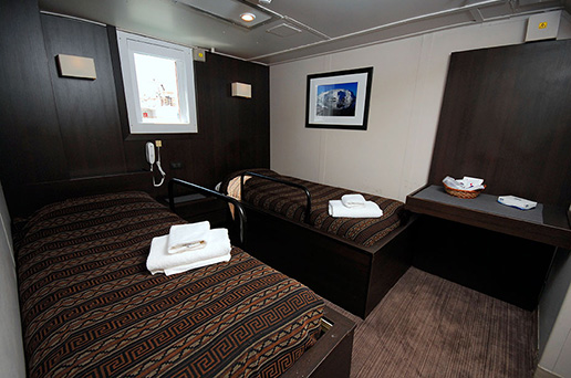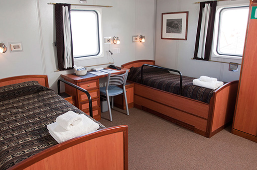 Alle Kabinen verfügen über genügend Stauraum. Das Restaurant ist gross genug, um allen Gästen gleichzeitig Platz zu bieten. Zudem verfügt die USHUAIA über eine grosse Panoramalounge, Bar und einen mit modernster Technik ausgestatteten Konferenzraum, eine gut bestückte Polarbibliothek, einen Umkleideraum und eine kleine Krankenstation. Der Kapitän, seine Offiziere und Mannschaft können auf eine langjährige Erfahrung in den Meeren der Antarktis zurückblicken.